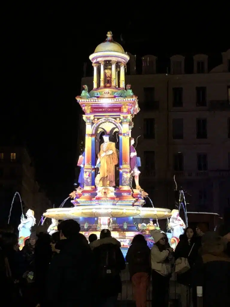 Au cœur de Lyon, la Place des Terreaux est un autre lieu phare de la fête. Entourée de bâtiments historiques et du Musée des Beaux-Arts, cette place se transforme en un lieu d’exception avec des projections lumineuses géantes. Les fontaines de la place prennent vie, avec des éclairages créant des effets spectaculaires sur l’eau et l’architecture environnante. C’est un véritable festival pour les yeux.